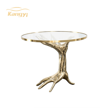 2023 новый стиль латунный низкий стол ручной работы современный декоративный уникальный круглый закаленный стеклянный боковой столик для гостиной
